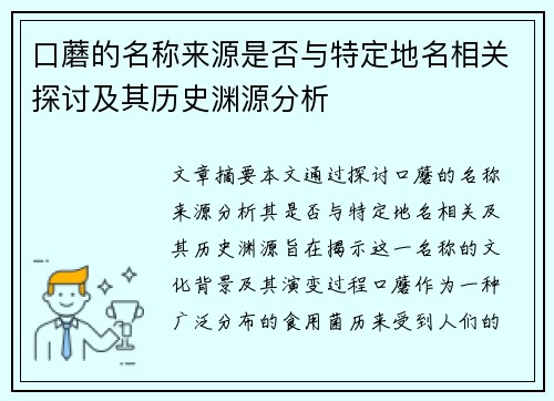 口蘑的名称来源是否与特定地名相关探讨及其历史渊源分析